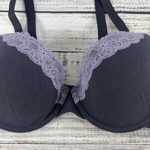 Iris & Lilly Support Underwire Bra size 36C Navy Blue Purple Lace Jersey Stretch