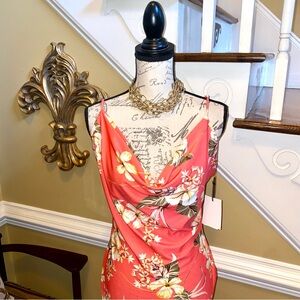 Iris Los Angeles Coral Floral Midi Dress