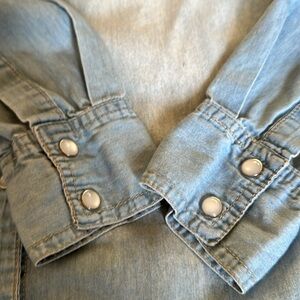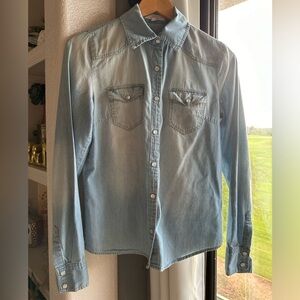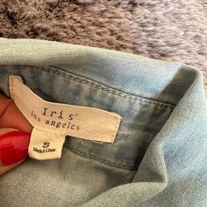 Iris Los Angeles Denim Athletic Slim Fit Shirt Pearl Snap Buttons Size S Women
