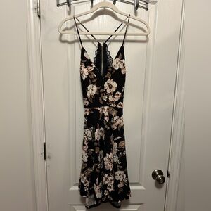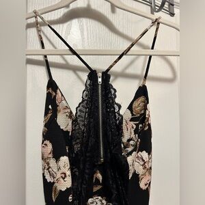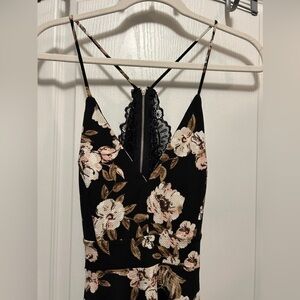 Iris Los Angeles Mini Dress Women’s M Black Floral Back Cutout Lace Sleeveless