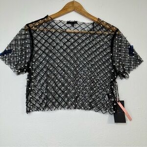 Elegant sheer blouse with pearl embellishments. Perfect for special occasions.