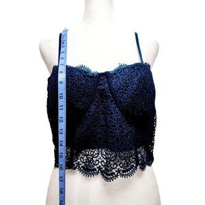 Iris Navy Blue Crochet Lace Crop Top Adjustable Straps Scalloped Hem Size L