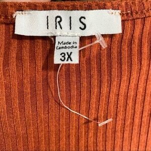Iris Orange Ribbed Button Front Short Sleeve Top