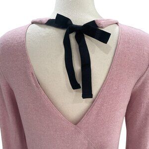 Iris Pink Long Sleeve Pullover Top – Soft Knit Back Bow Detail – Women's Size M