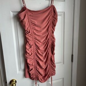 Chic ruched design. Spaghetti straps. Perfect for a night out. Box 11