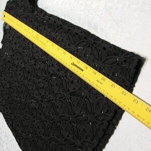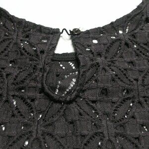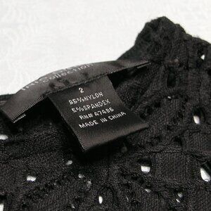 Iris Singer Size 2 BLACK Crochet long bell sleeve at the wrist. One button at the back of the neck.
