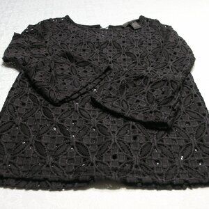 Iris Singer Black lace/Crochet 3/4 sleeve bell sleeve top Size 2
