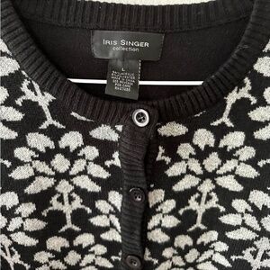 Iris Singer Retro Black and White Floral Cardigan Sweater L