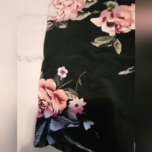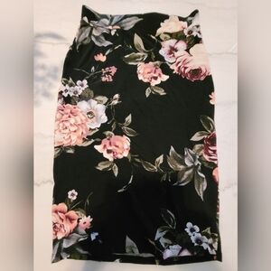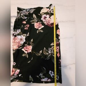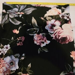 Iris Stretchy Floral Pink Rose Black Pencil Skirt Large