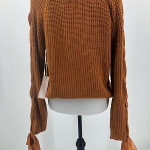 Iris basic women’s. Mustard color long sleeve knit sweater with ribbon up the sides crewneck brand new with tags