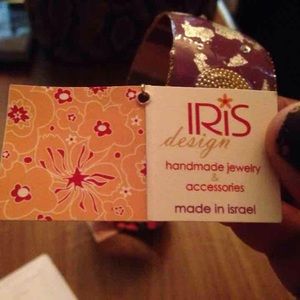 Iris design handmade jewelry and accessories made in Israel. This unique jewelry is with a modern design forming a collage of texture hand-painted illustration, crystal sparkles & gloss
