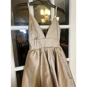 Iris Gold Iridescent Hi Low Baby Doll Maxi Dress Sz L Y2K Fairy Formal. Aa