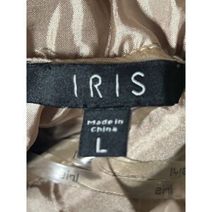 The Iris Gold Iridescent Hi Low Baby Doll Maxi Dress in size L is a stunning Y2K fairy formal dress perfect for weddings or parties. This sleeveless dress features a sweetheart neckline, strappy sleeves, and a zip closure for easy wear. The dress is adorned with beaded accents and has a long length, making it an elegant choice for any special occasion. With its fit & flare style and vintage design, this dress exudes a sense of glamour and sophistication, ideal for those who love unique and eye-catching fashion statements.