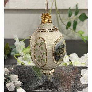 Irish Blessing Porcelain Ornament With Gold Accents & Scenic Design