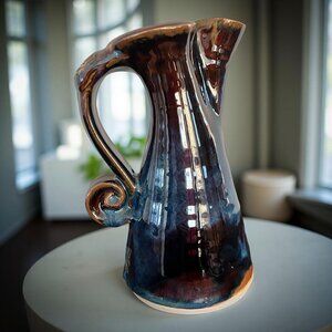 This is a beautiful example of Irish studio pottery by Colm De Rís, known for his distinctive and richly glazed pieces. This handcrafted pitcher features a striking combination of vivid blue and earthy brown glazes, showcasing the artist’s signature style and attention to detail.