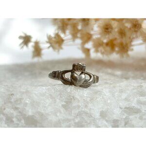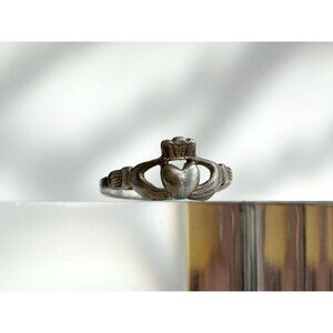 Irish Celtic Claddagh Framed Heart Sterling Silver 925 Vintage Ring - sz 5.5