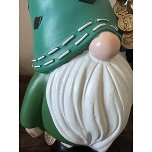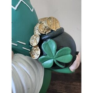 Irish Ceramic Gnome Pot Of Gold Lucky 12" Solid Shamrock Leprechaun Green EUC