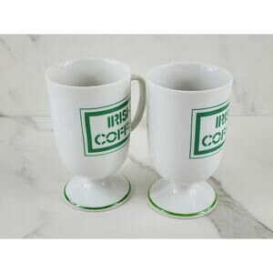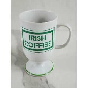 Irish Coffee Mug w/ Recipe Green Clover Pedestal 5" White Porcelain x2 Vintage