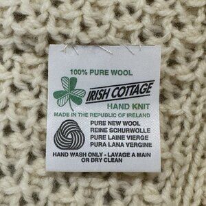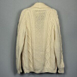 Irish Cottage Sweater Mens Beige Wool Cardigan Chunky Cable Knit Pockets Buttons