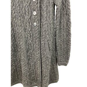 Irish Crafts Gray Cable Knit Long Button Up Cardigan Sweater Womens Size Small