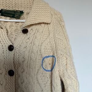 This is the perfect winter cardigan. Hand knit in Donegal, Ireland, this vintage wool cardigan is thick, cozy, and made to last. As a handmade item, it is not labeled for size. Please refer to photos with inches measurements.