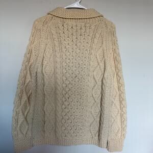 Irish Fisherman Vintage Handknit Cardigan Sweater Small Cable Knit 90s Cabin