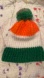 Green, White and Orange with a fluffy yarn pom-pom .
