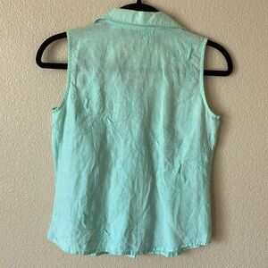 Irish Linen Richard Malcolm Embroidered Sleeveless Blouse Top W’s PS Beach Tank