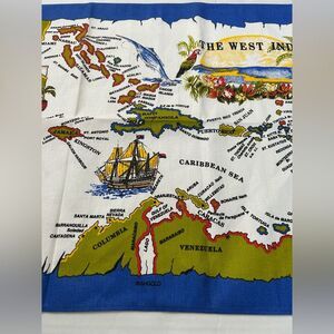 Irish Looms Linen The West Indies Map Tapestry Tea Towel - Blue and White
