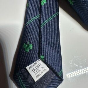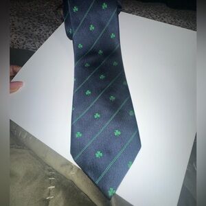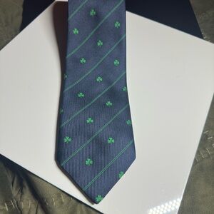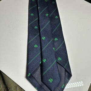 Stylish navy blue tie with green shamrock pattern. Perfect for adding a touch of luck to your outfit. St. Patrick Day