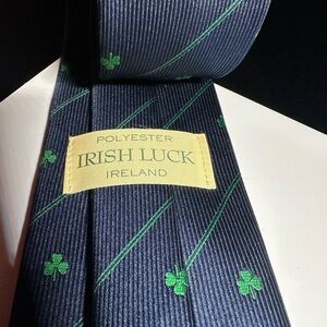 Irish Luck Navy Blue Tie with Green Shamrocks