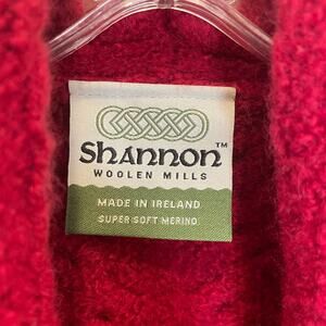 Irish Merino Wool Cardigan Shannon Woolen Mills Cable Knit Red Shawl Collar XS