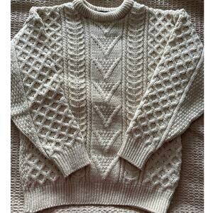 Irish Piper Pure New Wool Aran Fisherman Sweater Medium Made in U.K.