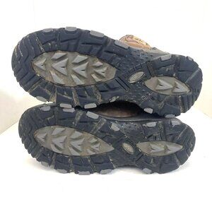 Good Pre-owned Condition- Shows wear with scuffs and creasing throughout, small puncture holes in the camouflage textile near the laces (see close-ups), areas of loose/frayed stitching, abrasion and fraying along the rubber toe rand seam, and dirt/residue from use. Hardware shows oxidation on some eyelets/hooks. Outsoles show use but have solid tread remaining. Laces intact. No major structural damage observed.