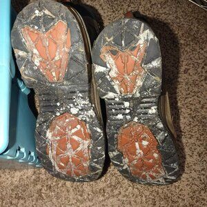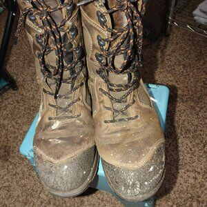 Durable waterproof work boots designed for comfort and protection, featuring Ultra Dry technology and slip-resistant soles. Have been worked in and have some plaster on them. They are still in great condition