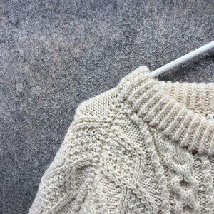 Irish Traditional Sweater Mens Large Cream Aran Cable Knit 100% Wool Ireland