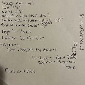 @violetkim646 I can answer any questions. I am currently getting ready to leave for a Feis. The measurements were done flat. My daughter is about a size 8-10 wearing this and just grew out of it at 70lbs. I will reach back out later today. Thank you