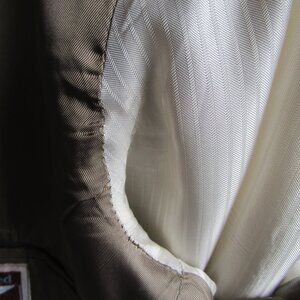 The sleeves have a creme smooth fabric lining, the back and inside pockets are in a tan or ecru tone smooth fabric.