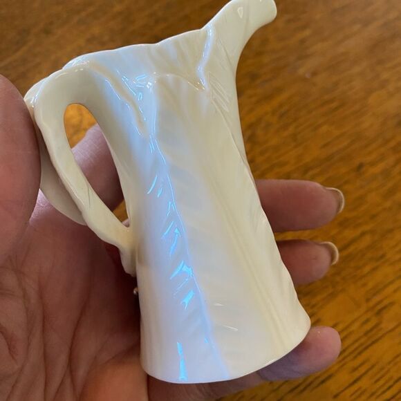 - Irish Belleek Mini Pitcher Leaf Pattern