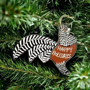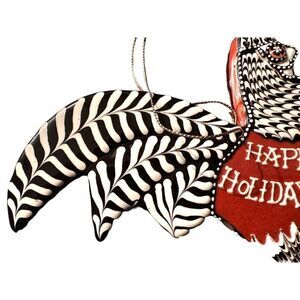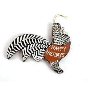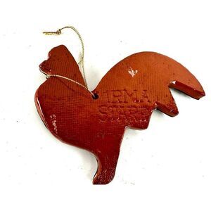 Irma Starr SlipWare Clay Pottery Happy Holidays Chicken/Rooster Ornament