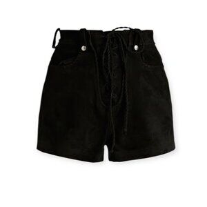 Iro Douma suede shorts in size 38, new with tags. Suede shorts feature whipstitched trims, two front slant pockets, two back patch pockets and belt loops. High-rise and fully lined. Lace-up front with concealed snap fastenings along front.