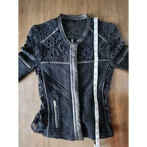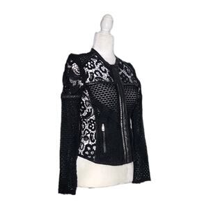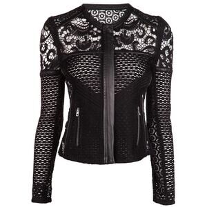 Iro Lewis Black Leather and Lace Crochet Evening Blazer Jacket Women's Size 1