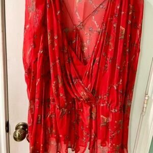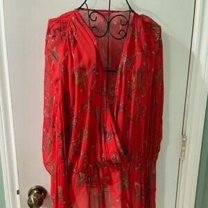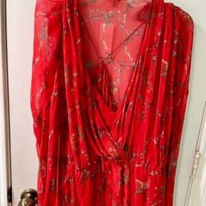 Self & Lining: 100% viscose. Dry clean only. Surplice neckline. Elasticized waist. regencycore, princesscore, Renaissance, romantic, whimsical, dreamy, feminine, delicate, vintage-inspired, elegant, graceful, poetic, timeless, ethereal, charming, sophisticated, regal, beautiful,Asymmetrical hem. Semi-sheer. Revolve Style No. IRO-WS172. Manufacturer Style No. AI057.