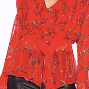 Iro Linette Floral Print Bell Sleeve Chiffon Blouse Top, Long Sleeve