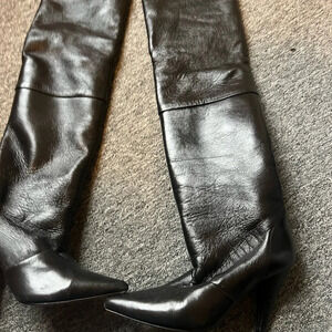 “Soft leather upper with suede sole. Pull-on styling. Convertible styling. Heel measures approx 3.75 HShaft measures approx 24 H. Made in Spain. IRO-WZ45. “