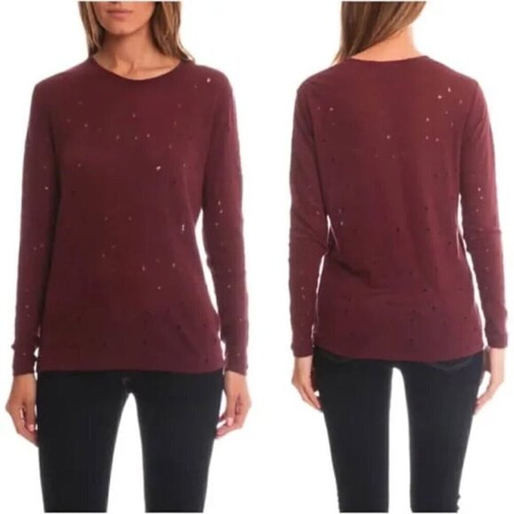 Iro Marvina Shirt Red Burgundy Distressed Linen Knit Long Sleeve Top. 100% linen. Size small