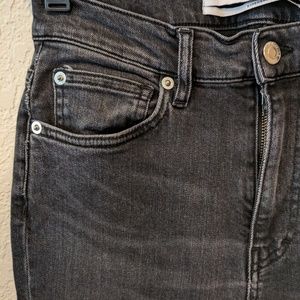 Great condition. Only worn a few times. Stretchy material featuring whiskering at the hips. Could be either called a weather black or a very dark grey.