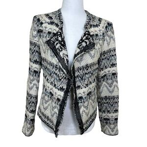 Iro - Women’s ‘Kroe’ Tweed Jacket, Tribal Chevron Print - White Size 36 FR 4 US