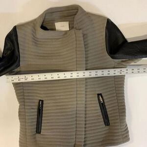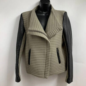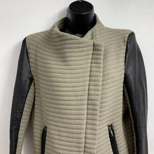 Iro Women's Mullen Combo Rib Knit Leather Sleeve Moto Jacket Size 42/XL