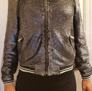 Women's Gray Barbara Blue Sequin bomber jacket